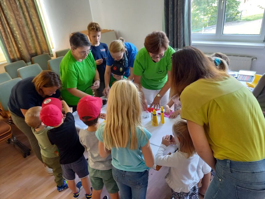 In Ungenach wurde am 3.10.2023 das erstes Bilderbuchkino mit Hilfe einer Onilo-Boardstory veranstaltet: "Als die Raben noch bunt waren" von Edith Schreiber-Wicke und Carola Holland. Die Geschichte wurde mit Autoplay und mit Sprecher abgespielt, die Suchen und Impulse waren dabei ausgeschaltet. Das Quiz zum Schluss wurde gemeinsam beantwortet. Die Kinder zwischen 3,5 und 8 Jahren ließen sich von der Geschichte auf der großen Leinwand iim Pfarrsaal verzaubern. Im Anschluss haben die Kindern noch Raben gebastelt und auf Ausmalbildern die Raben wirklich bunt gemacht.
