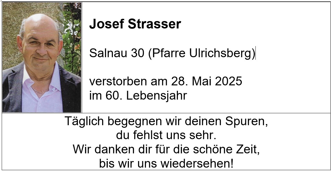 Wir gedenken unseres Verstorbenen Josef Strasser, Salnau 30