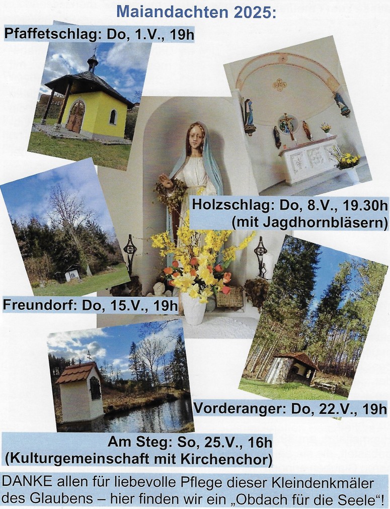 Wir laden herzlich ein zu den Maiandachten in der Pfarre Klaffer!