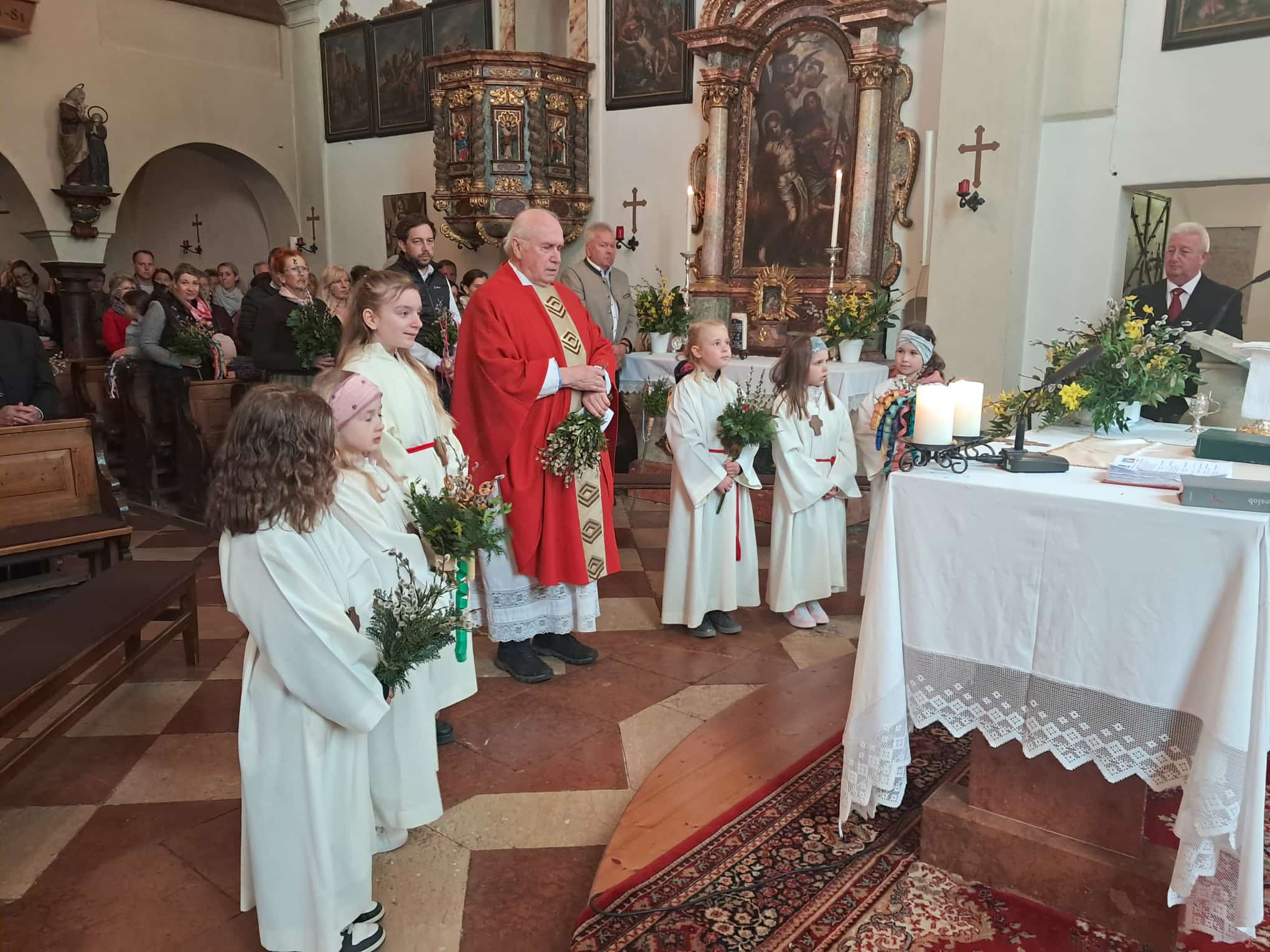 Unser Kaplan Mag. Franziskus Schachreiter empfing die Erstkommunionkinder.