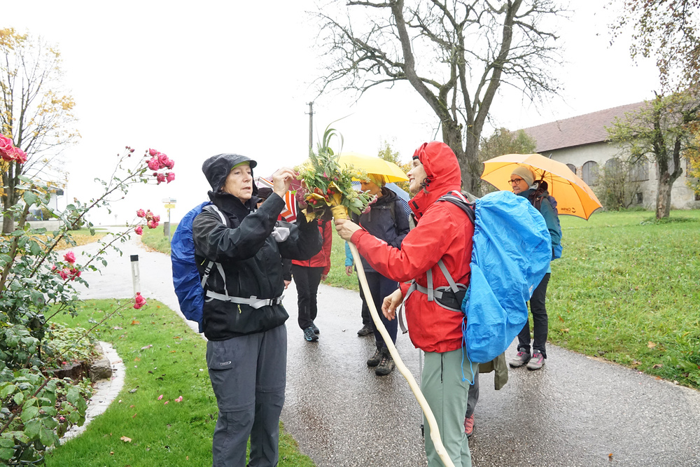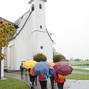 Das KBW Team Viechtwang lud am 15.10. zum gemeinsamen Pilgern mit Pilgerbegleiterin Sieglinde Holzmannhofer ein. Start war die Pfarrkirche Vorchdorf, wo in der Franziskuskapelle der Pilgerstab gesegnet wurde. Dann ging es nach Einsiedling. Nach einer kurzen Andacht in der Kirche und einer geschichtlichen Erklärung pilgerte die Gruppe am Almuferweg weiter. Auch eine kurze Jausen- und Kaffeepause wurde eingelegt. Während des Weges "wuchs" der Pilgerstab, den jeder durfte Schönes aus der Natur dazustecken. Am Nachmittag erreichte die Schar das Ziel, die Parrkirche Viechtwang, in der ein kurzer besinnlicher Abschluss durch Sieglinde gemacht wurde. Daraufhin stärkten sich die Pilger bei Gulasch und Suppe.