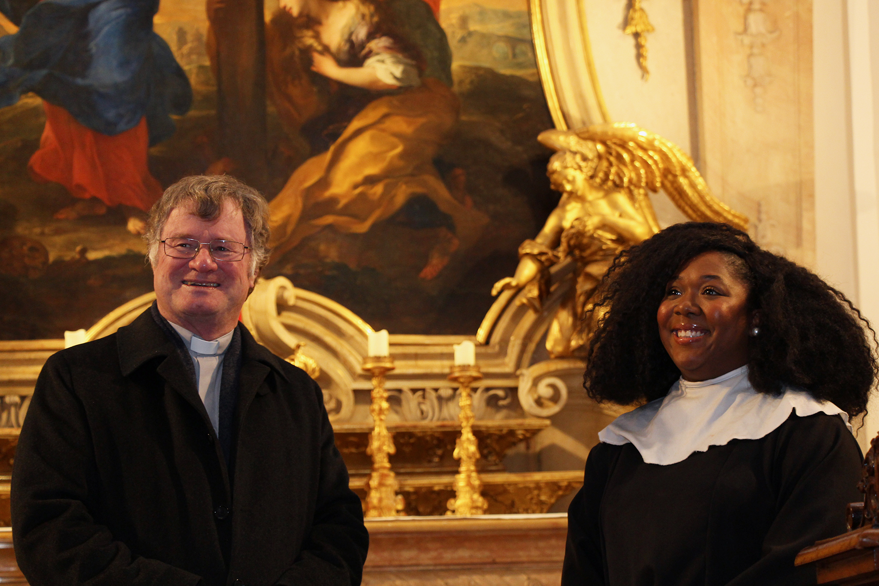 Im Gespräch zwischen Bischof Scheuer und Gruppenleiterin und Frontsängerin Bri Luv (aus Richmond /Virginia) stellte sich heraus, dass es einen kulturellen Unterschied zwischen Österreich und USA gibt, wie ein Gottesdienst gefeiert wird. In beiden Kulturen ist das Ziel das gleiche: den Menschen Liebe, Kraft und Hoffnung zu schenken. „The Sisters“ praktizieren dies in Form von Musik, Spaß und einer bunten Palette an Gospelsongs. Natürlich ließen es sich „The Sisters“ nicht nehmen, Bischof Scheuer ein Ständchen zu bringen: Sie stimmten „a cappella“ das weltweit bekannte „Hail Holy Queen“ sowie „I will follow him“ an. Ein gemeinsames „Vater unser“ (auf Englisch) bildete den Höhepunkt der Begegnung. Bischof Scheuer war begeistert und wünschte den Künstlerinnen eine gute Zeit in Österreich.